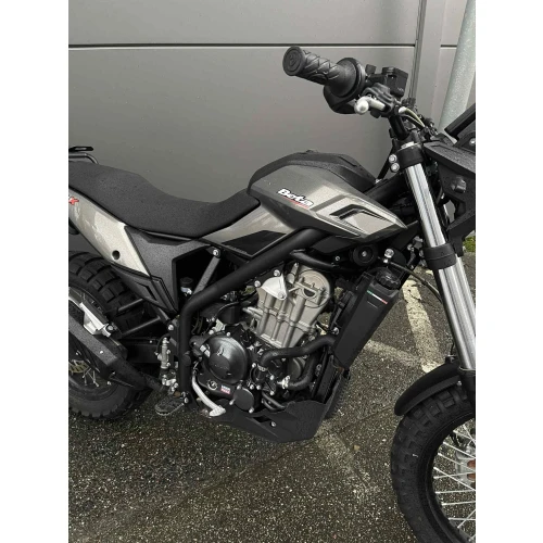 Ramme: Rammen til de nye ALP-syklene er en stålomkrets med motoren hengt under seg, ferdig i svart. Dette garanterer samtidig styrke og håndterbarhet for sykkelen, takket være rammedimensjonene utviklet av Betamotors teknikere, slik at den kan fungere i perfekt synergi med fjæringen.